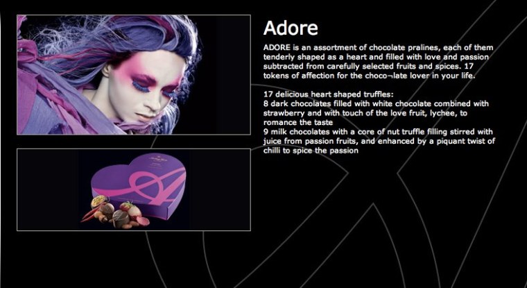 Chocolates which enhanced by a piquant twist of chilli to spice the passion and a touch of the love fruit, lychee, to romance the taste. By: Anthon Berg