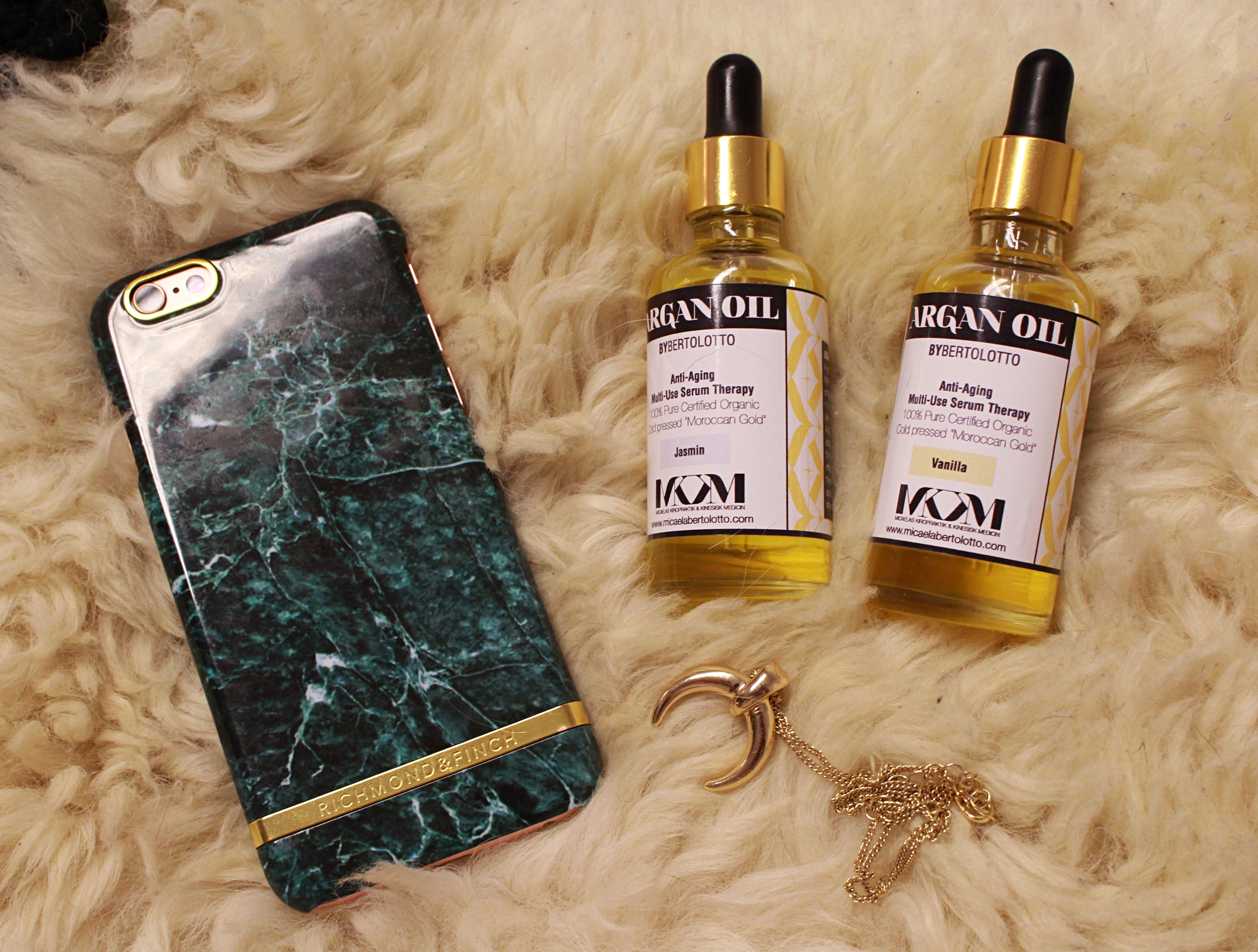 As my skin has been suffering from the Swedish cold, my beautiful chiropractor – Micaelas Kiropraktik & Kinesisk Medicin – gave me these “Liquid Gold” bottles, one with a touch of vanilla scent, while the other with Jasmine scent to pamper my skin.