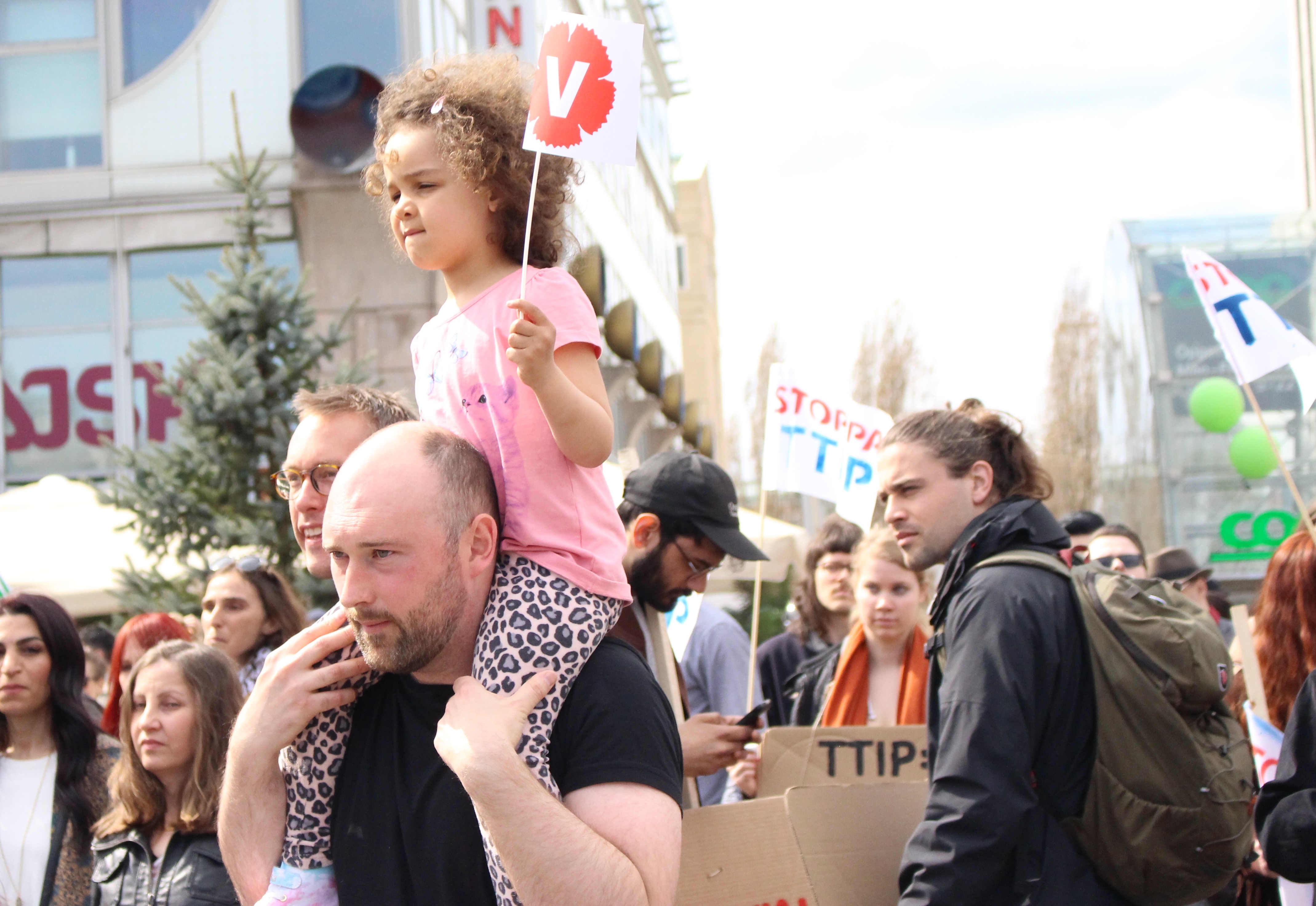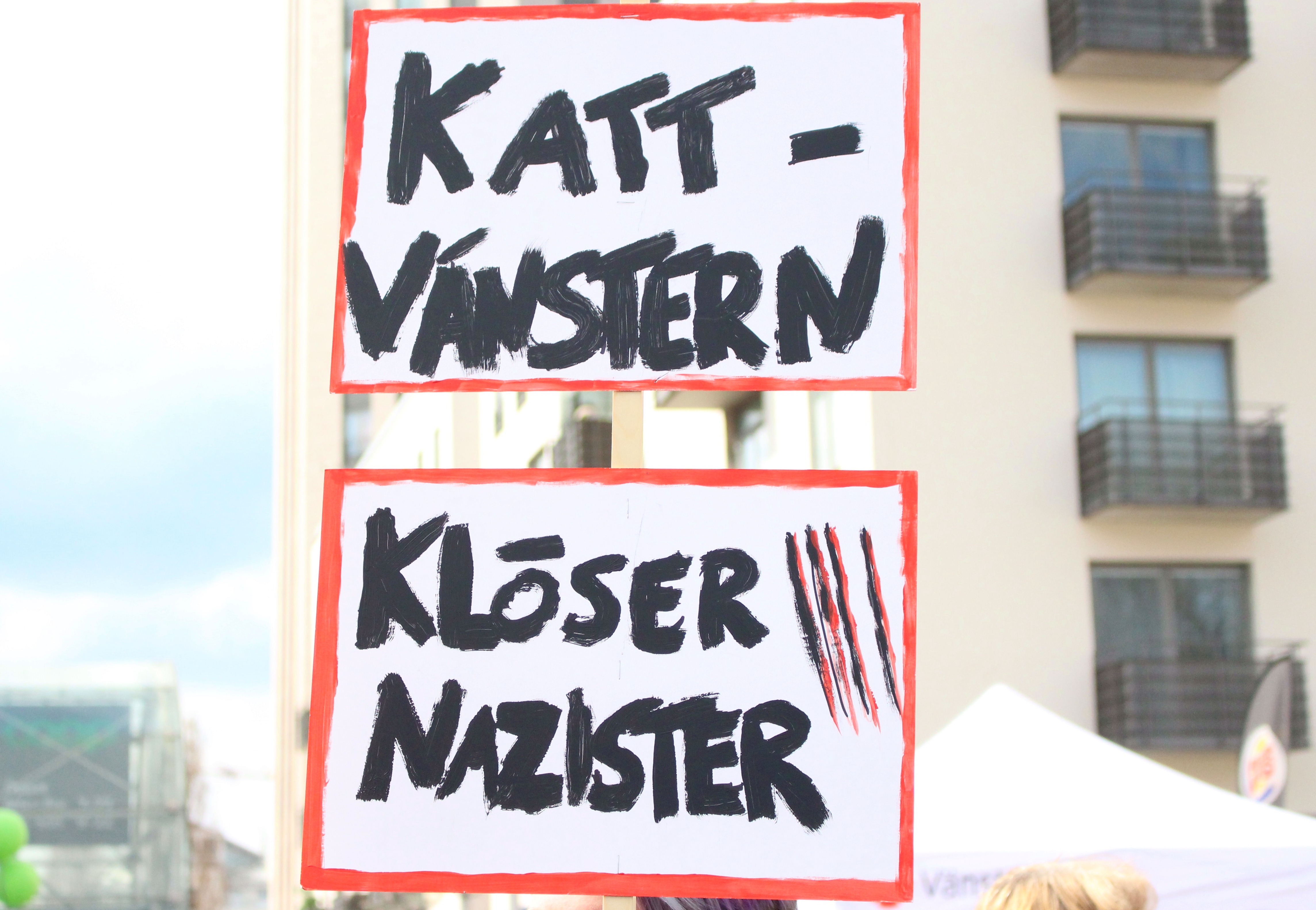 There were probably thousands of people, and you can hear different languages coming out from the demonstration. Of course there were plenty of signs in Swedish. But there were also some signs in English, in Persian and Arabic.